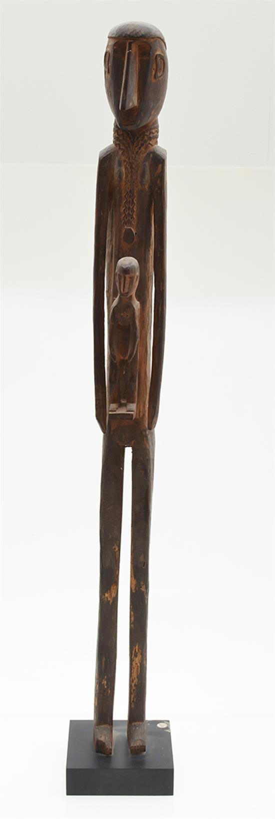 A LARGE MOTHER & CHILD ANCESTOR FIGURE, ATAURO ISLAND, some old wood damage, as visible 97.5cm high