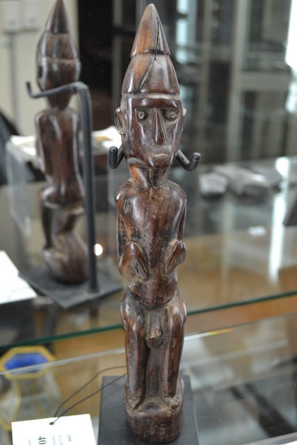A SUMBA ISLAND ANCESTOR-TOTEM FIGURE, OPOSSUM, hands facing downwards, elongated headgear 30cm high
