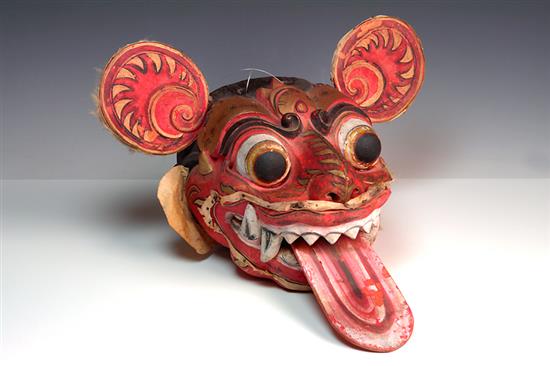 A LARGE BALINESE LIONS MASK, large round inserted ears 63.5 x 40.5 x 25cm