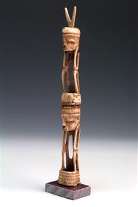 AN IATMUL MWAI MASK, MIDDLE SEPIK RIVER, 20th century, elongated nose ending with a small birds head, minor wood damage on side as v...