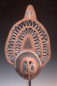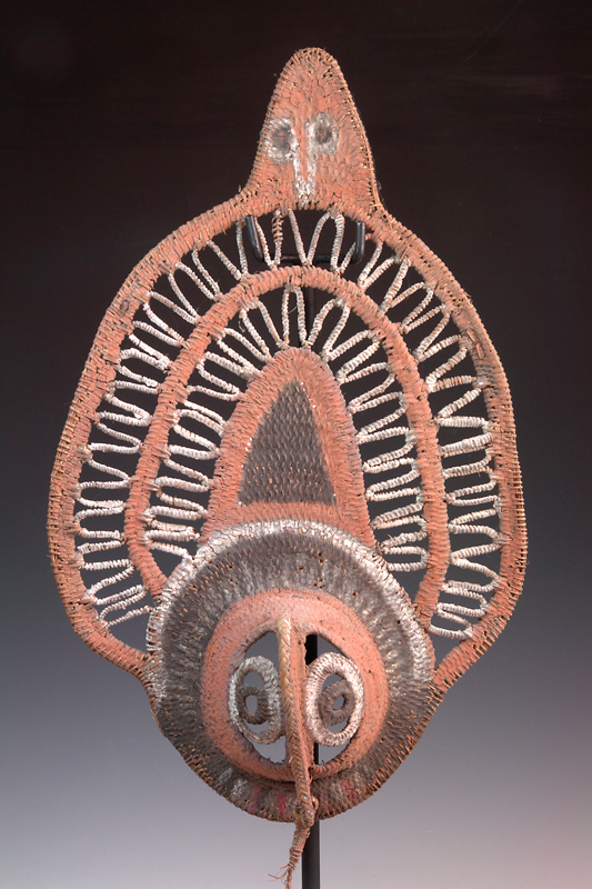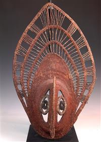 AN IATMUL MWAI MASK, MIDDLE SEPIK RIVER, 20th century, elongated nose ending with a small birds head, minor wood damage on side as v...