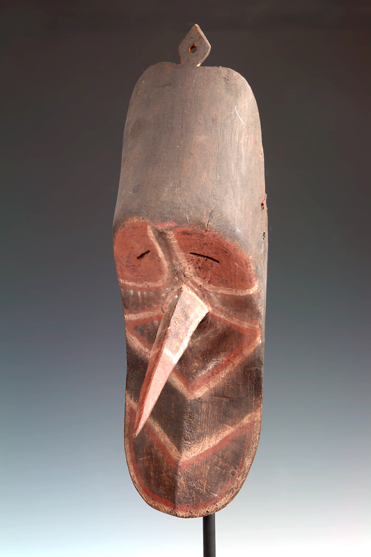 A PNG ANCESTOR MOSQUITO MASK, MAMBE VALLEY, SEPIK RIVER, bulging forehead, prominently pointed nose, recessed chin, 48 x 15cm