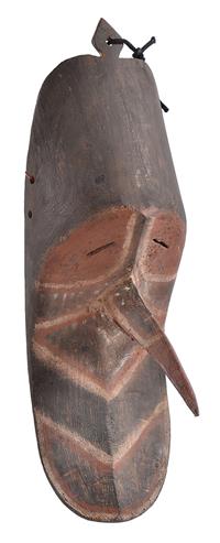 AN IATMUL MWAI MASK, MIDDLE SEPIK RIVER, 20th century, elongated nose ending with a small birds head, minor wood damage on side as v...