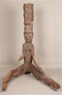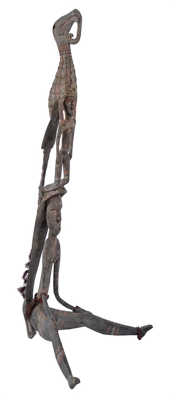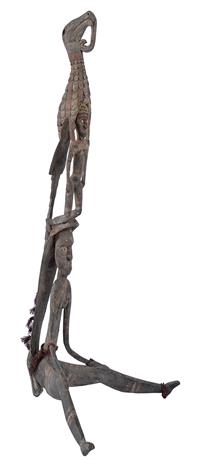 TWO SAWOS MIDDLE SEPIK FIGURAL GABLE SUPPORTS, the largest 137cm high, faults