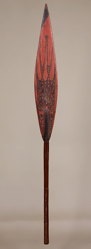 A LAKE SENTANI PADDLE, carved regional motif on both sides of blade, 139.5cm long