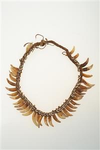 A LARGE COLLECTION OF NEW GUINEA & SOLOMON ISLAND BODY ORNAMENTS, including child's dog tooth armband, Solomon islands armband, shell core necklace, rattan armband, four dog tooth necklaces, cowrie shell necklaces, two plaited fibre armbands and a plaited fibre necklace