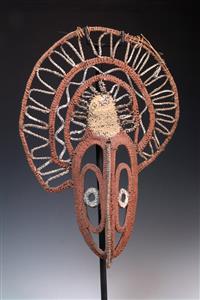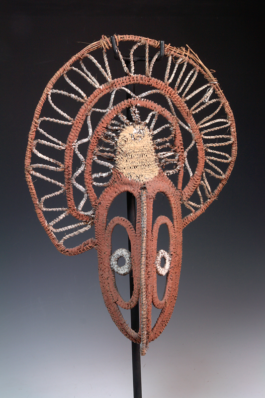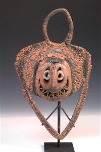 FOUR MAPRIK REGION YAM MASKS AND A BRIDAL EXCHANGE GIFT, PNG, the latter 33.5 cm high