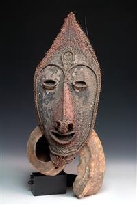 AN IATMUL MWAI MASK, MIDDLE SEPIK RIVER, 20th century, elongated nose ending with a small birds head, minor wood damage on side as v...
