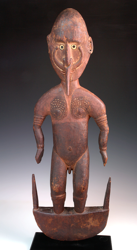 AN IATMUL MWAI MASK, MIDDLE SEPIK RIVER, 20th century, elongated nose ending with a small birds head, minor wood damage on side as v...