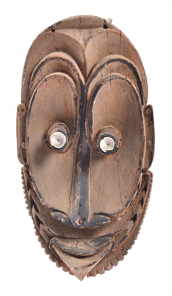 A SEPIK GABLE MASK, NANGISSAP VILLAGE, serrated beard-line, protruding lower lip arching to chin