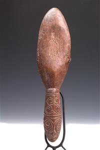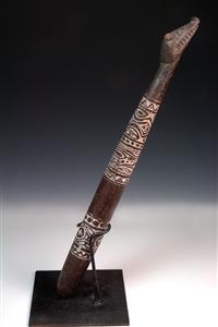 THREE NEW GUINEA OBJECTS, including garamut drum beater, Sepik mallet and Murik lakes taro pounder. The drum beater 57cm long