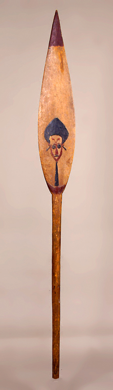 A BUKA PADDLE , SOLOMON ISLANDS, an ancestral head carved on blade, 157cm long