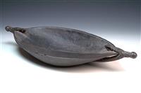 A HAWAIIAN POI BOWL, with three native butterfly repairs, inside one side a root knot, 13.5 x 13.5cm
