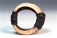 A COLLECTION OF MELANESIAN OBJECTS, including Blackwater river shamans basket, highlands armband, Kambot village bamboo comb, Sepik neckband, Wattam lagoon betelnut mortar, opossum tooth necklace, kina body ornament and two shell money discs