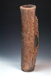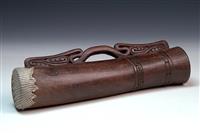 TWO MASSIM FINGER DRUMS AND A MASSIM REGION DANCE SHIELD, the dance shield 58 x 25cm
