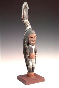 AN IATMUL MWAI MASK, MIDDLE SEPIK RIVER, 20th century, elongated nose ending with a small birds head, minor wood damage on side as v...