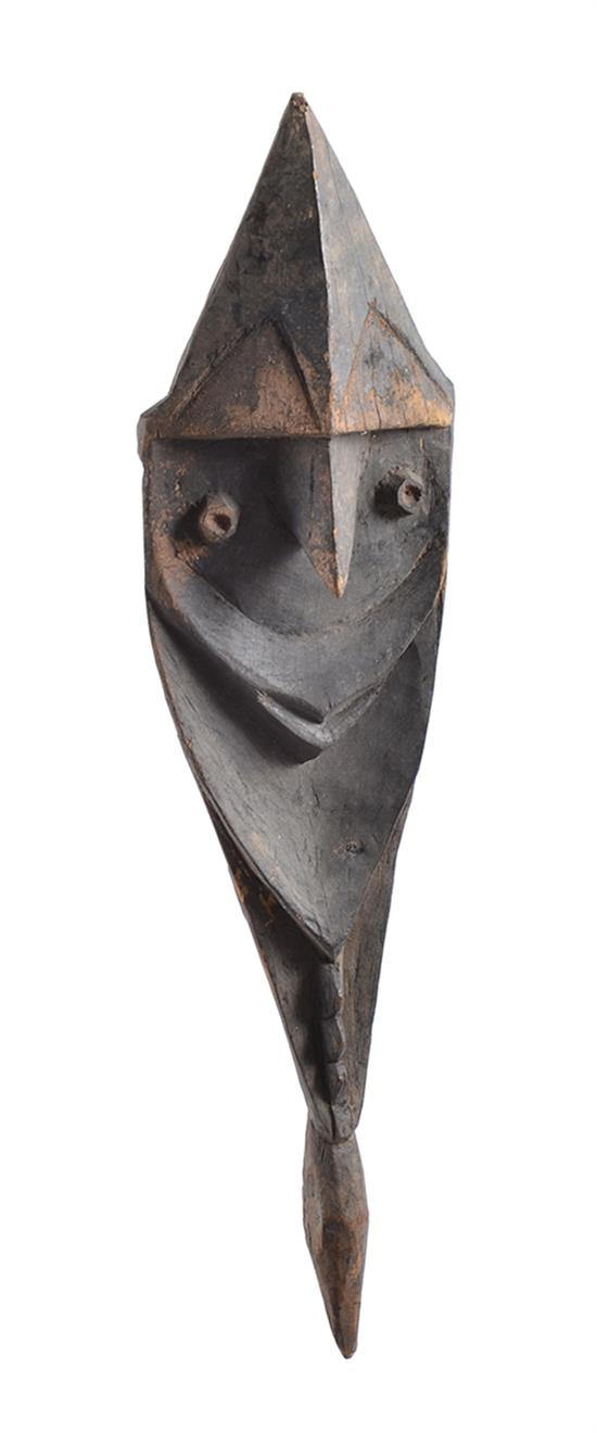 AN IATMUL MWAI MASK, MIDDLE SEPIK RIVER, 20th century, elongated nose ending with a small birds head, minor wood damage on side as v...