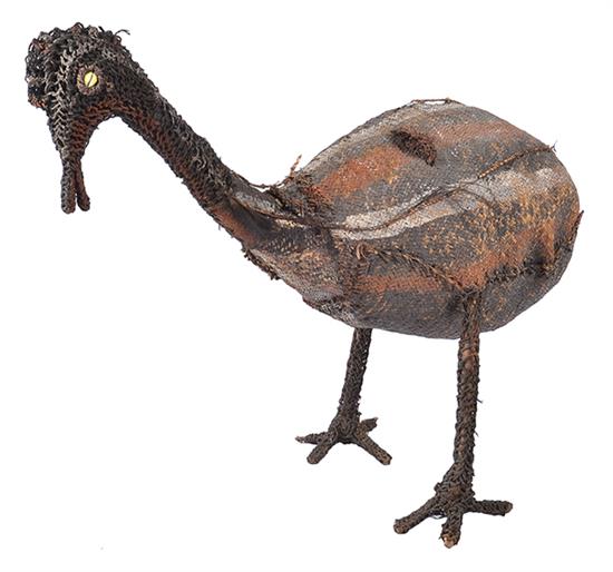 A LARGE PNG PLAITED FIBRE AND PAINTED SAKSAK BARK CASSOWARY, TAMBANUM VILLAGE, 101cm long