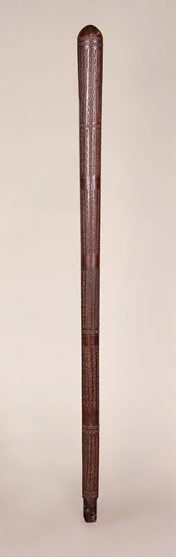 A FIJIAN POLE BOWAI CLUB, with decorative geometric design 88cm long