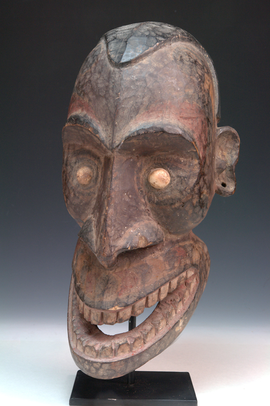 AN IATMUL MWAI MASK, MIDDLE SEPIK RIVER, 20th century, elongated nose ending with a small birds head, minor wood damage on side as v...