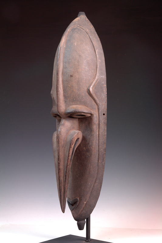 AN IATMUL MWAI MASK, MIDDLE SEPIK RIVER, 20th century, elongated nose ending with a small birds head, minor wood damage on side as v...