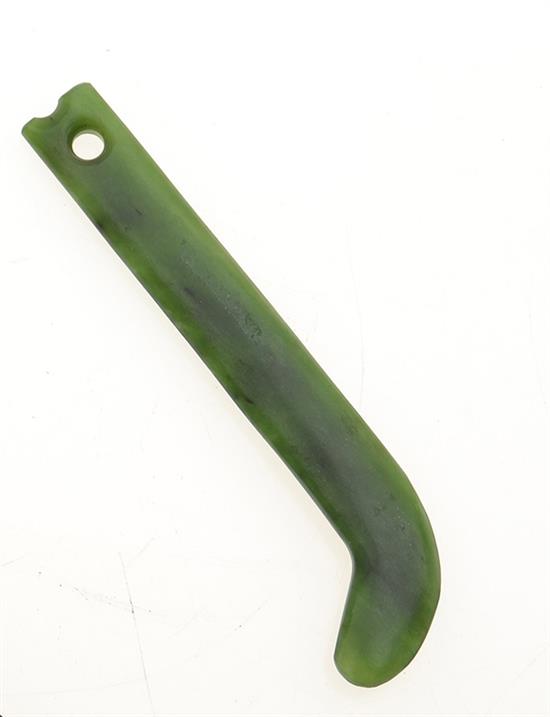 A MAORI NEPHRITE EARRING, new suspenion hole drilled by native owner, 8.5cm long