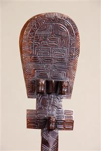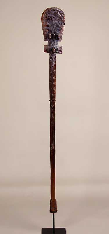 A MARQUESAS ISLANDS CHIEFTAIN'S STAFF, extensive intricate geometric carvings, some minor chips, 124cm long
