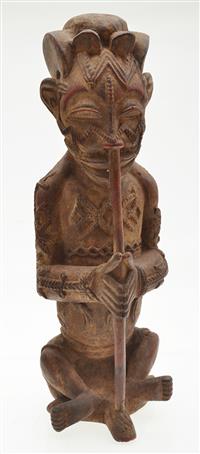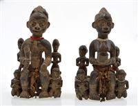 A PAIR OF AFRICAN FIGURES AND ONE OTHER, a Makonde tribe fire god figure and a pair of royal family figures. The fire god figure 57cm high