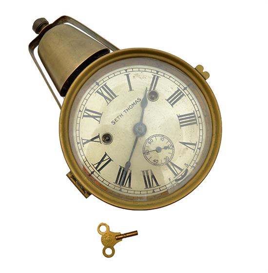 A SETH THOMAS BRASS CASED SHIP'S CLOCK WITH EXTERNAL BELL