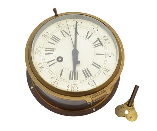 A SETH THOMAS BRASS CASED SHIP'S CLOCK