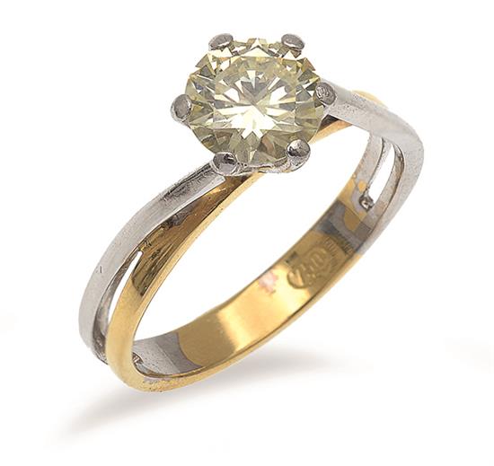 The round brilliant cut diamond of 1.12cts, mounted in a twist band of 18ct white and yellow gold, ring size M-N.