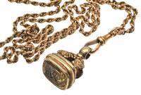 AN ANTIQUE GOLD GUARD CHAIN AND A SEAL