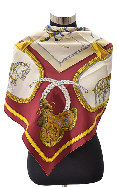 The 'Grand Apparat' design by Jacques Eudef, in gold and cream on a burgundy background, 90cm square.