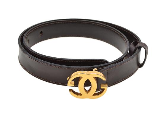 Styled in dark brown leather, with gold metal buckle, circa 1970, total length 84cm.
