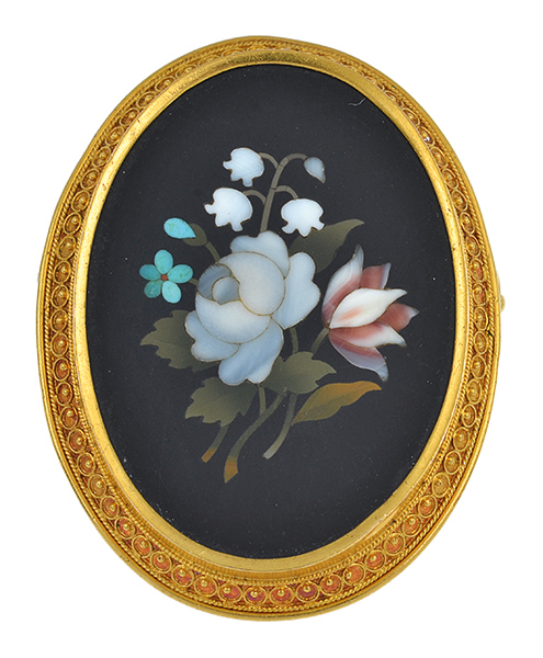 A VICTORIAN PIETRA DURA BROOCH