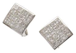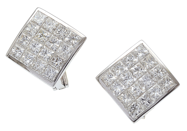 Each having a diamond shaped panel set with sixteen princess cut diamonds totalling 3.20cts, mounted in 18ct white gold.