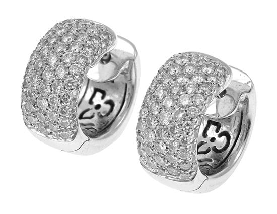 Each circular hoop, pave set with round brilliant cut diamonds totaling 1.34cts, mounted in 18ct white gold.