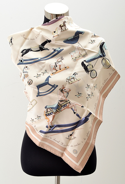 The 'Raconte-moi le Cheval' design by Dimitri Rybaltchenko, in pastel colours on a cream background, 90cm square.