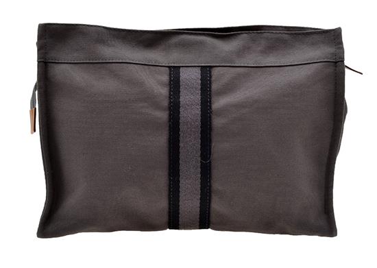 Styled in grey cotton, with grosgrain feature and silver metal hardware, 30 x 22 x 10cm.