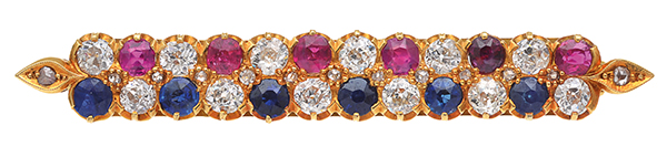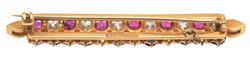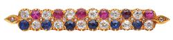 Comprising twelve old European cut diamonds totalling 1.40cts, interspaced by a row of six round rubies and six round sapphires, signed Wendt, all mounted in 18ct gold, circa 1900.