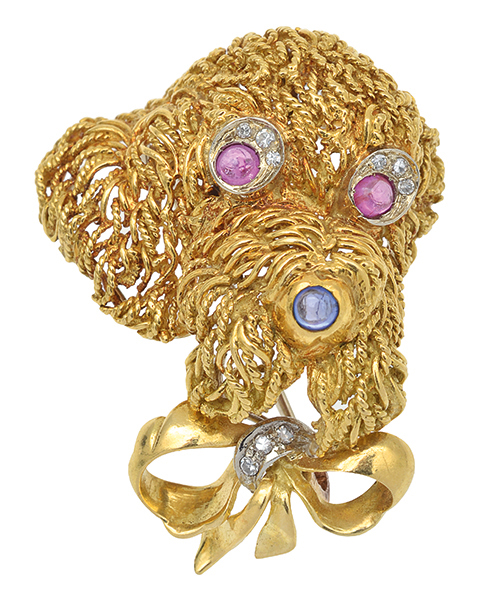 A RUBY, SAPPHIRE AND DIAMOND DOG BROOCH