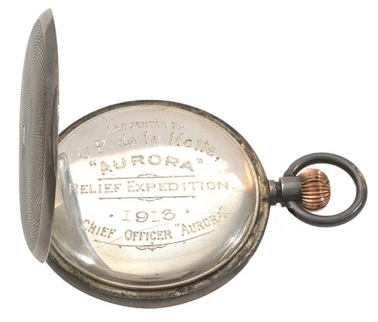 A PRESENTATION POCKET WATCH TO C.P DE LA MOTTE ' 1916 CHIEF OFFICER AURORA' RELIEF EXPEDITION 1916