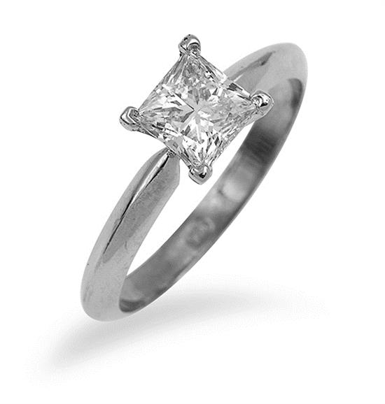 The princess cut diamond of 0.90cts, having a GIA laser inscription colour D, clarity VS1, mounted in 18ct white gold, ring size L.