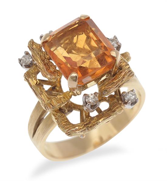 AN ABSTRACT CITRINE AND DIAMOND RING