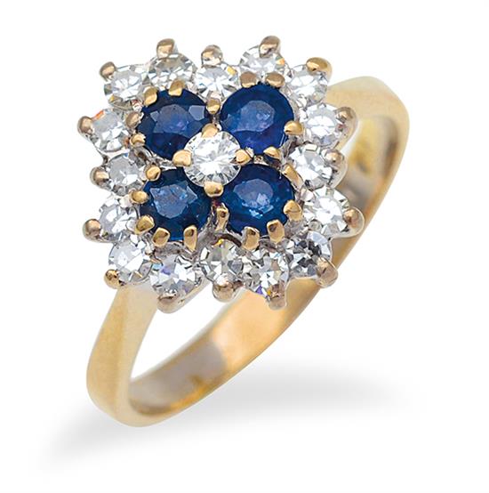 A SAPPHIRE AND DIAMOND CLUSTER RING