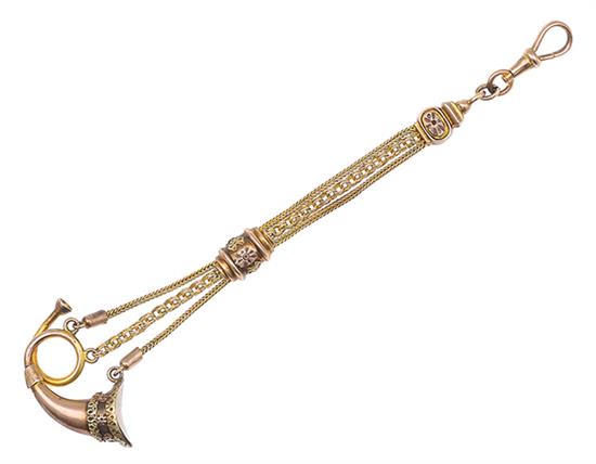 Modelled as a horn of plenty in 9ct rose and yellow gold, total length 130mm.