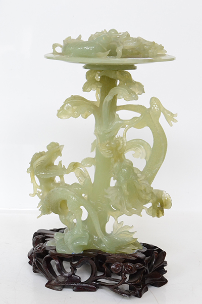 JADE FIGURE OF A CLIMBING DRAGON AND CATFISH