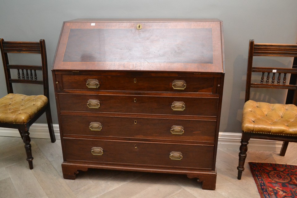 A GEORGE IV MAHOGANY DROP FRONT BUREAU