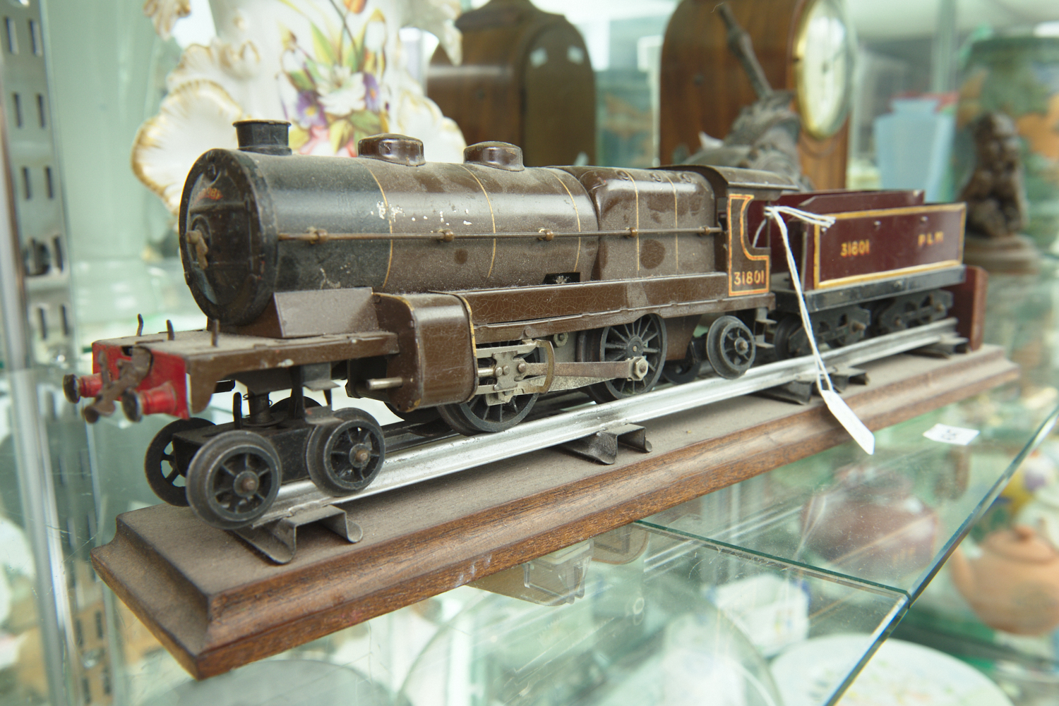 RARE FRENCH HORNBY NO.3/E 4-4-2 31801 LOCO AND TENDER, PLM, PARIS LEON MARSEILLE, MAROON-BROWN LIVERY, UNBOXED ON TRACK DISPLAY STAND, TOUCH UPS (AF) L.45CM