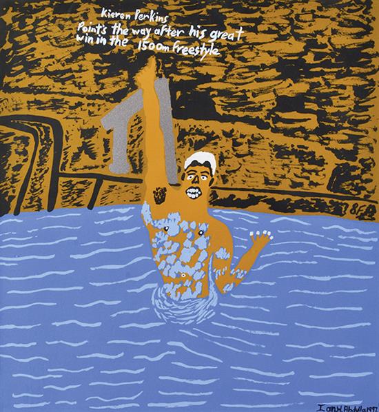 Way to Go! Kieren Perkins points the way after his great win in the 1500m freestyle 1997